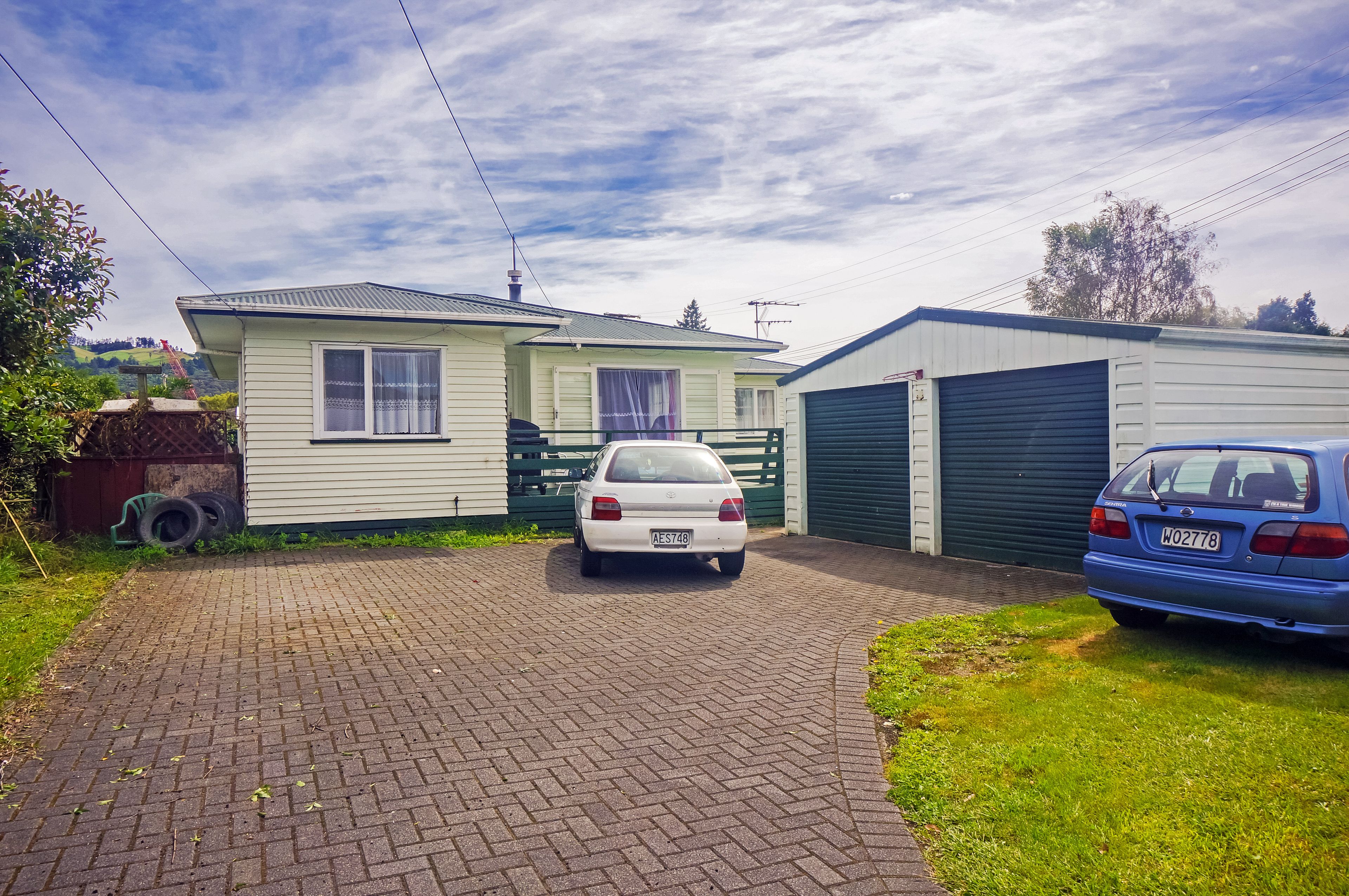- Main home has 3 bedrooms, 1 bathroom, separate double garage and currently