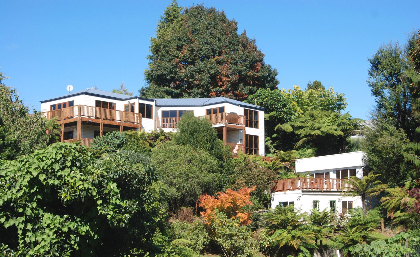 Meander down the paths into well-manicured, sheltered and private grounds with an abundance of bird life and fruit trees and native bush.